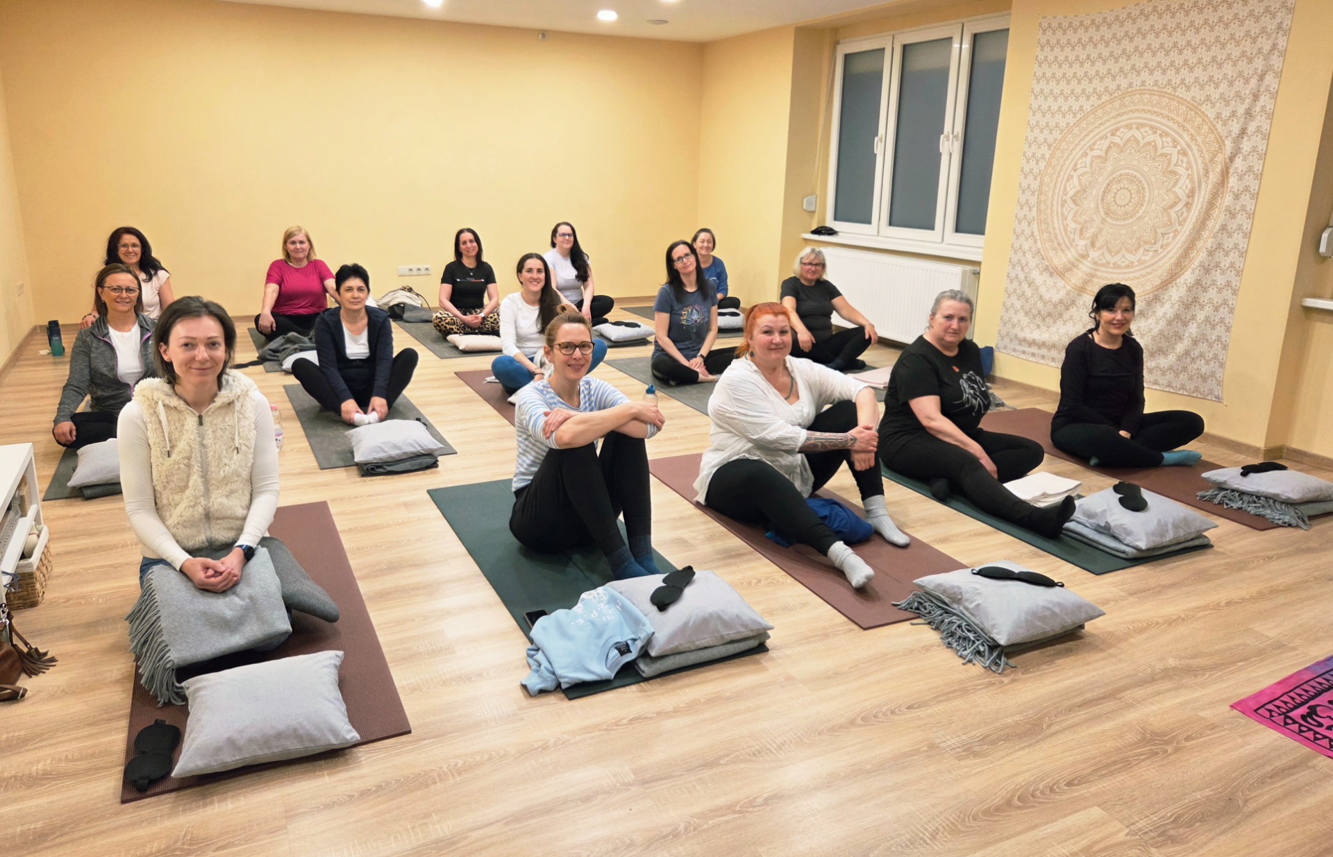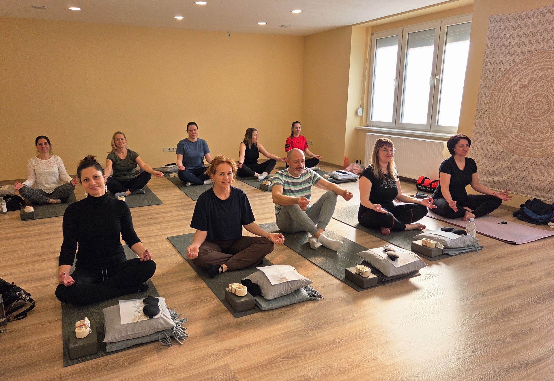 - Az órák tematikája: ráhangolódás légzőgyakorlatokkal, bemelegítő,- erősítő,- csavaró,- nyújtó ászánák. Az óra végén 15 perc irányított relaxáció intuitív hangszerekkel.