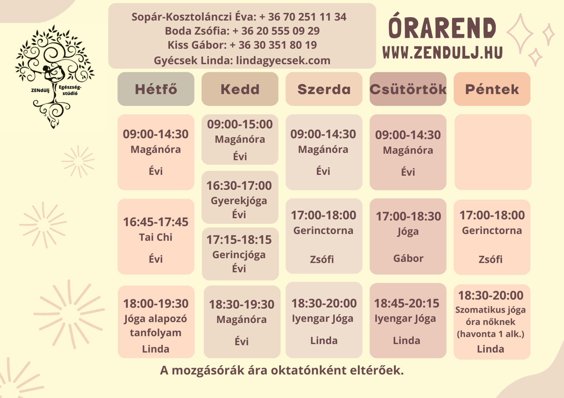 Bejelentkezés és bővebb információ a kiválasztott órát tartó oktató - Órarenden szereplő - elérhetőségén.